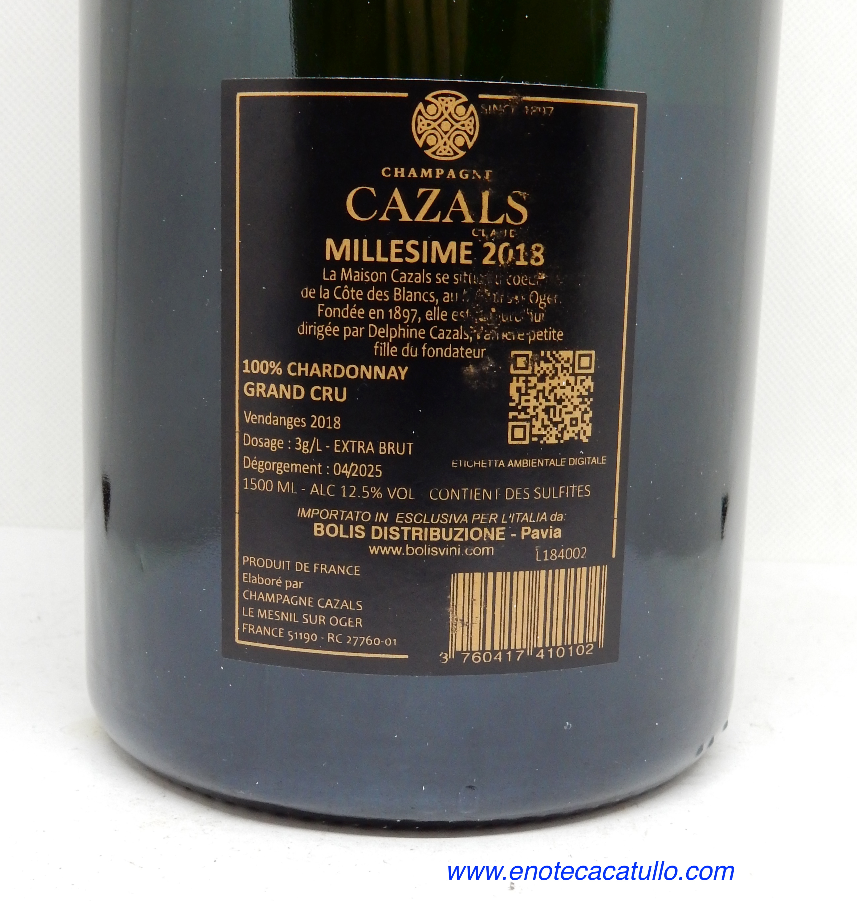 CHAMPAGNE CAZALS CLAUDE BLANC DE BLANCS EXTRA BRUT GRAND CRU MILLESIME 2018 MAGNUM