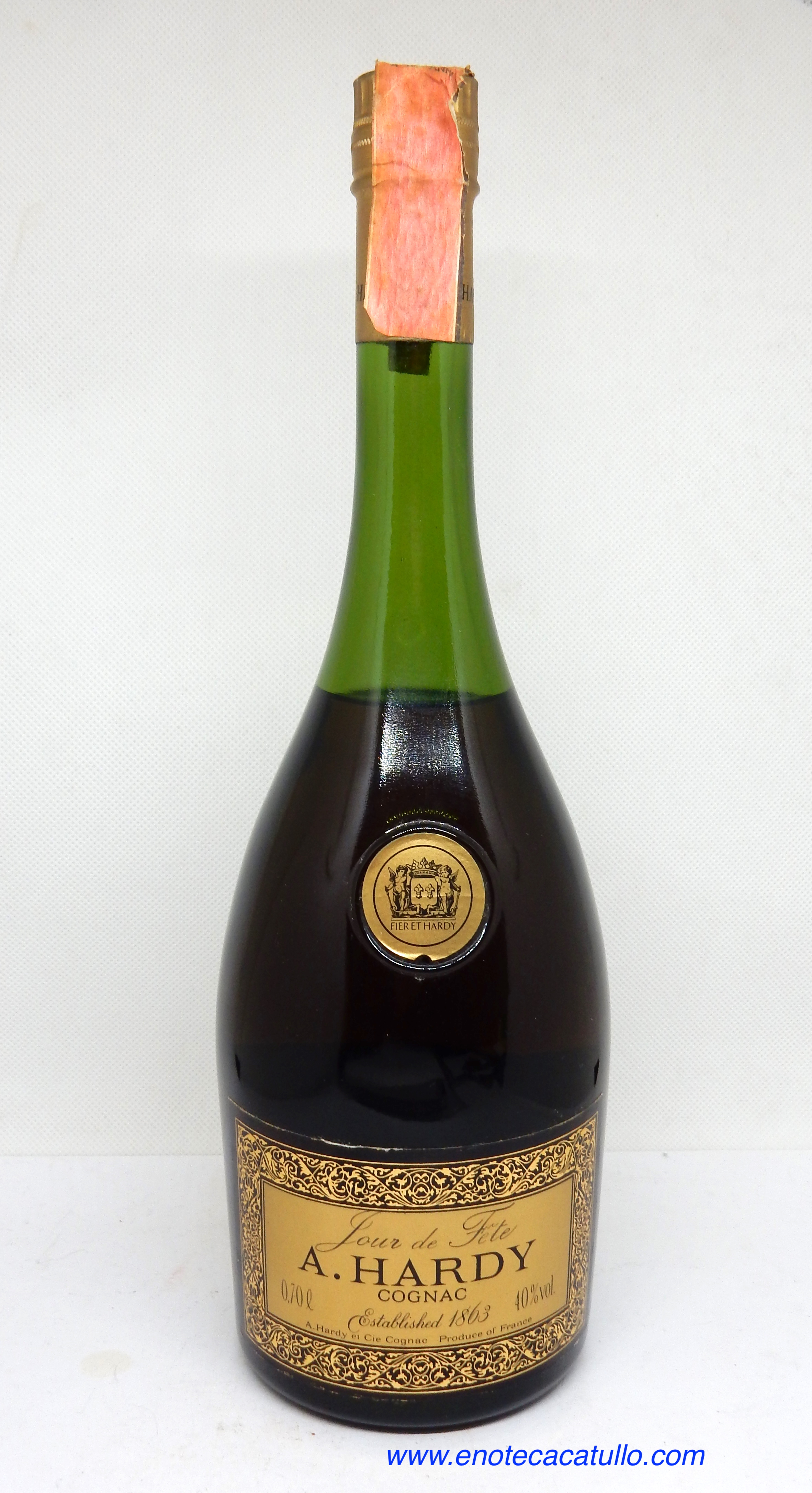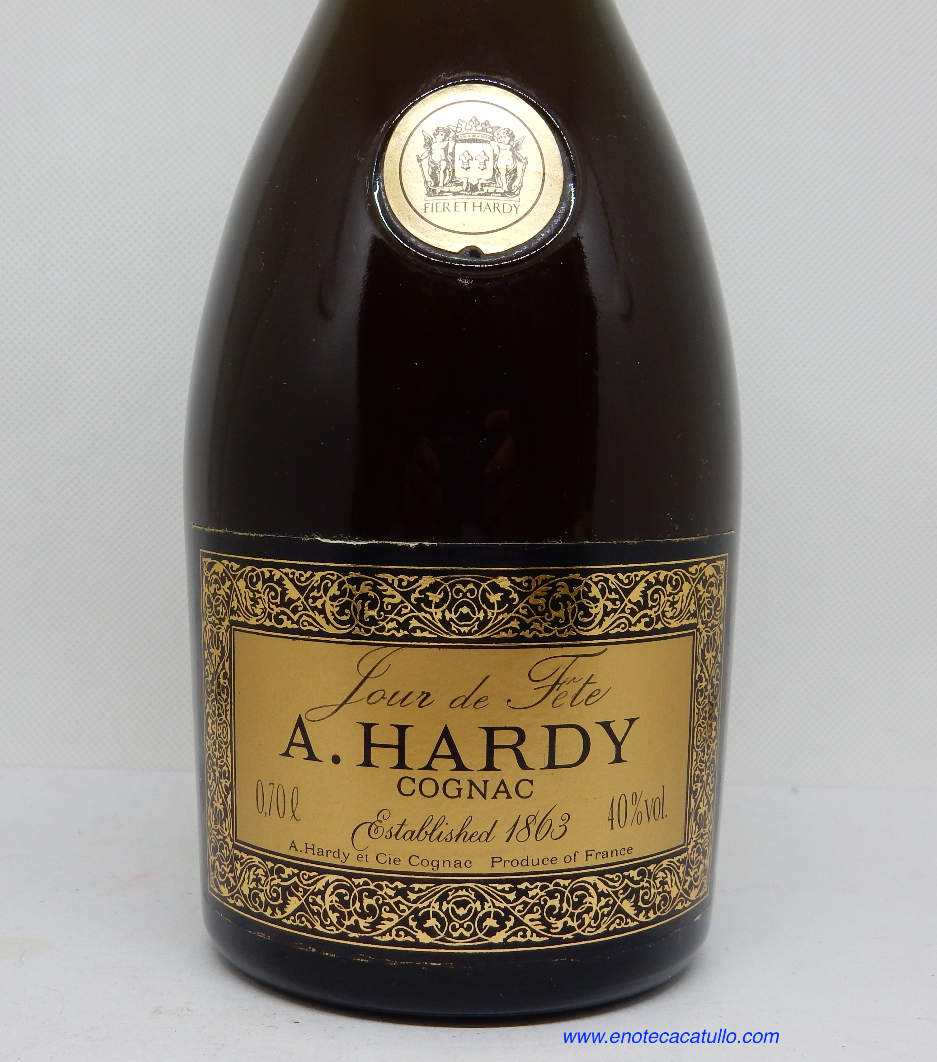 Datato imbottigliamento, presumibilmente anni ’90, per questo Cognac Hardy titolato “Jour de Fête”.