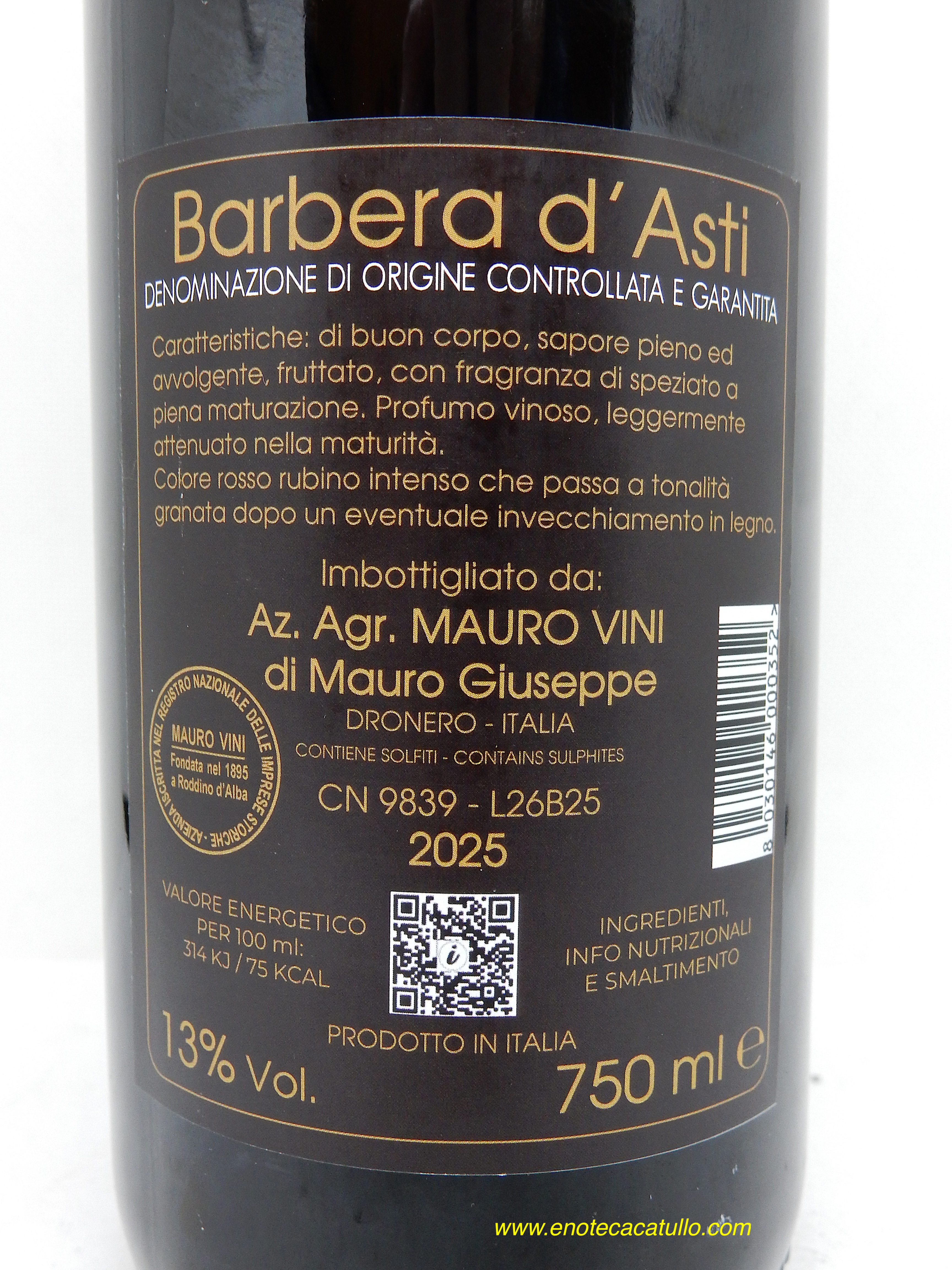 BARBERA D'ASTI DOCG 2025 AZ. AGRICOLA MAURO VINI