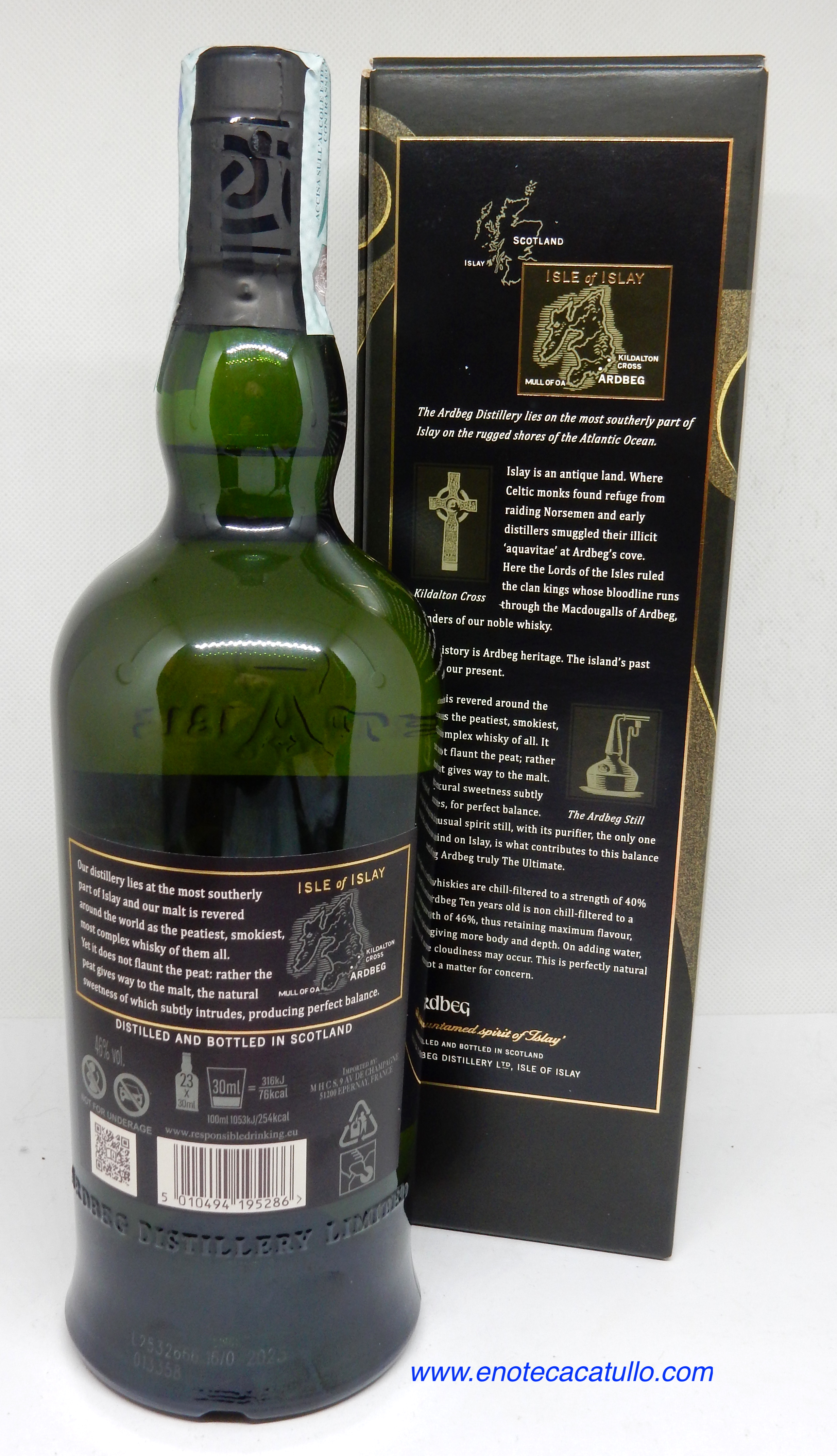 Il Single Malt Ardbeg Ten è un vero e proprio pilastro di questa distilleria di culto per tutti gli appassionati dei grandi torbati scozzesi. Il 10 anni è uno dei pochi imbottigliamenti presenti da decenni, e proviene da una selezione di barili ex-Bourbon, sia di primo riempimento che refill. È inoltre il primo whisky Ardbeg a non essere filtrato.