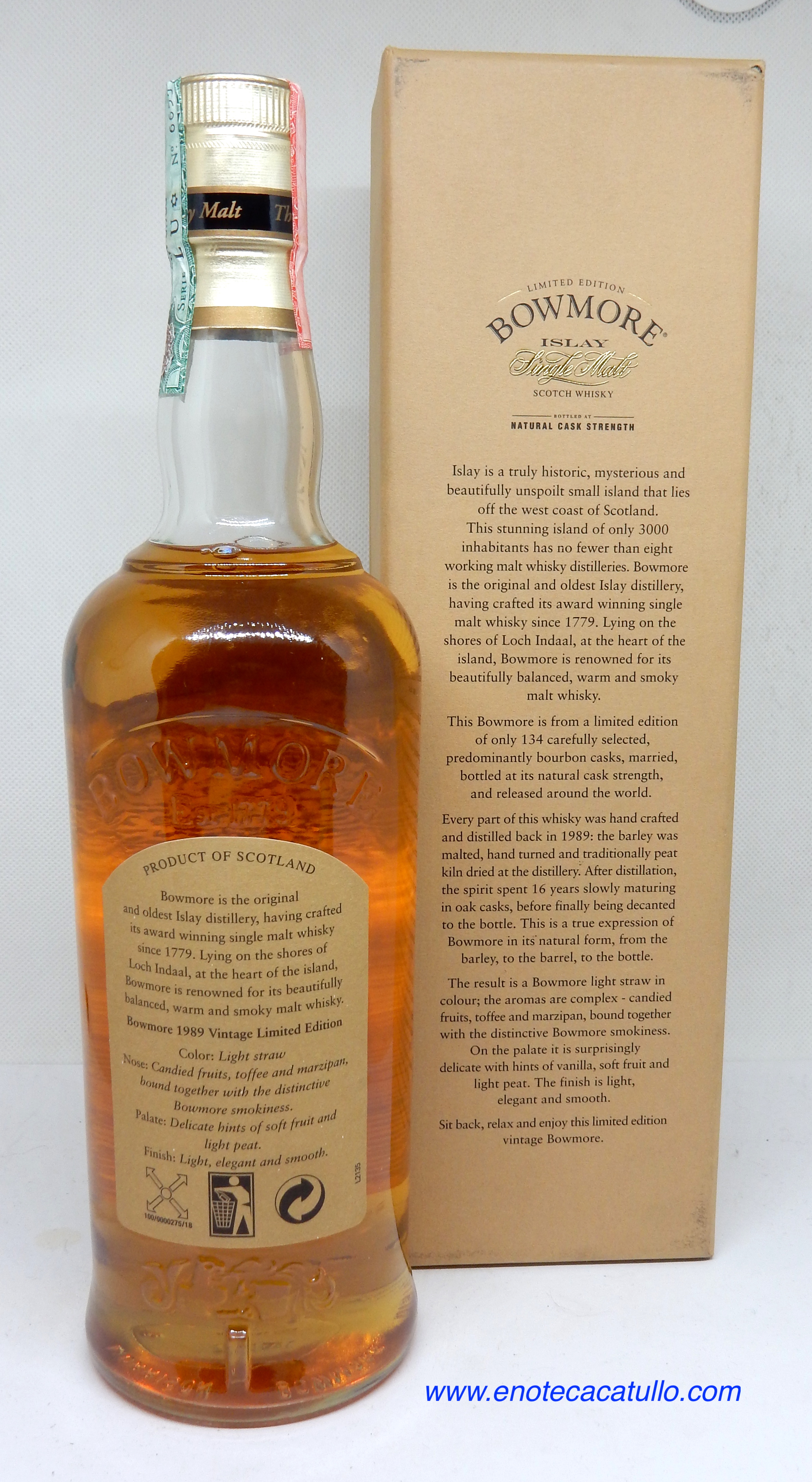 BOWMORE LIMITED EDITION 1989 AGED 16 YEARS NATURAL CASK STRENGTH ISLAY SINGLE MALT SCOTCH WHISKY