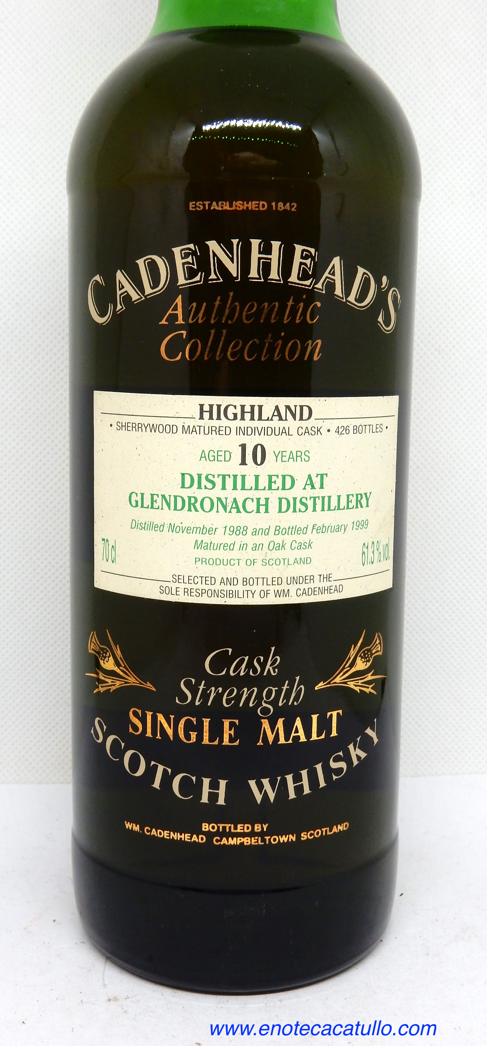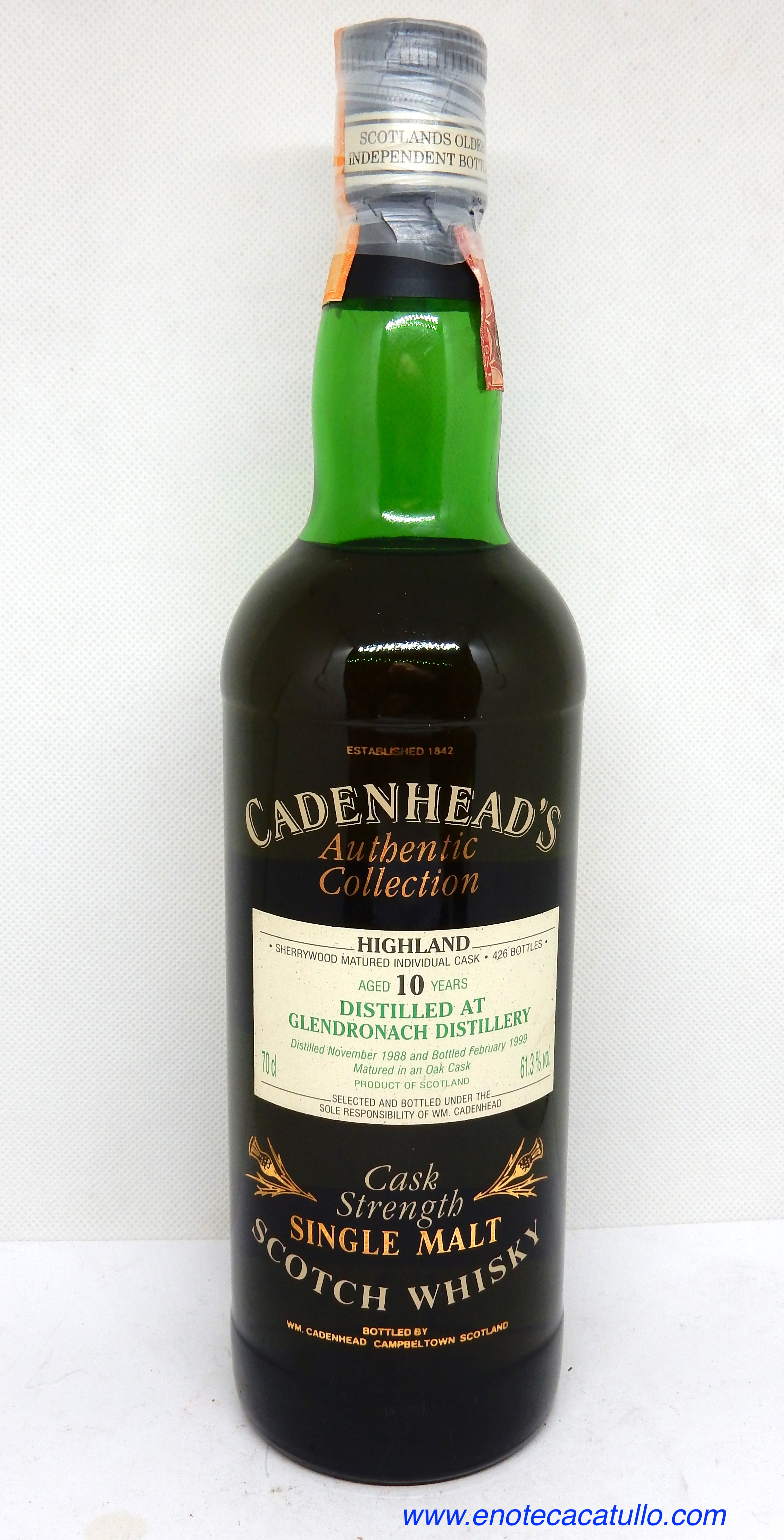 GLENDRONACH 1988 AGED 10 YEARS RELEASE 1999 CASK STREGTH SINGLE MALT SCOTCH WHISKY CADENHEAD'S AUTENTIC COLLECTION