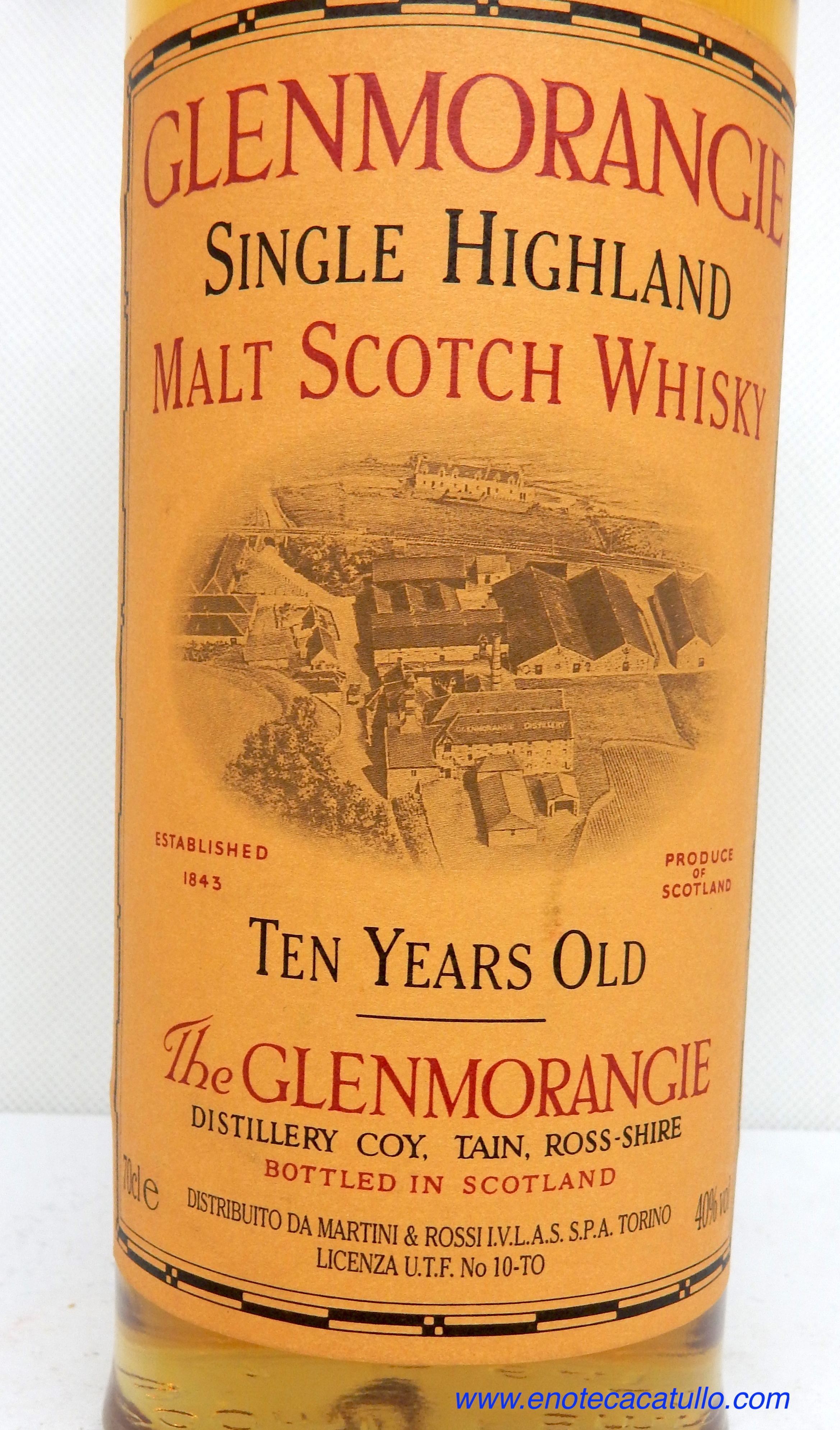GLENMORANGIE 10 YEARS OLD SINGLE HIGHLAND MALT SCOTCH WHISKY MARTINI & ROSSI IVLAS IMPORT 70 CL.